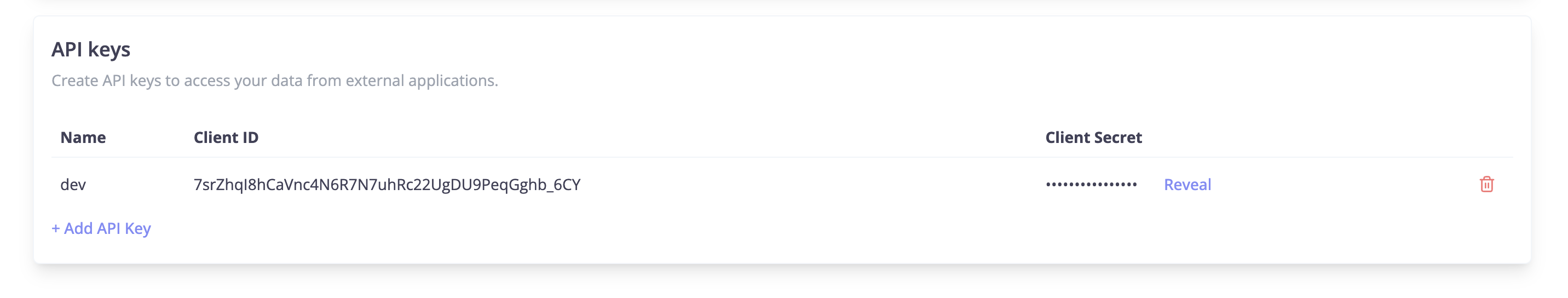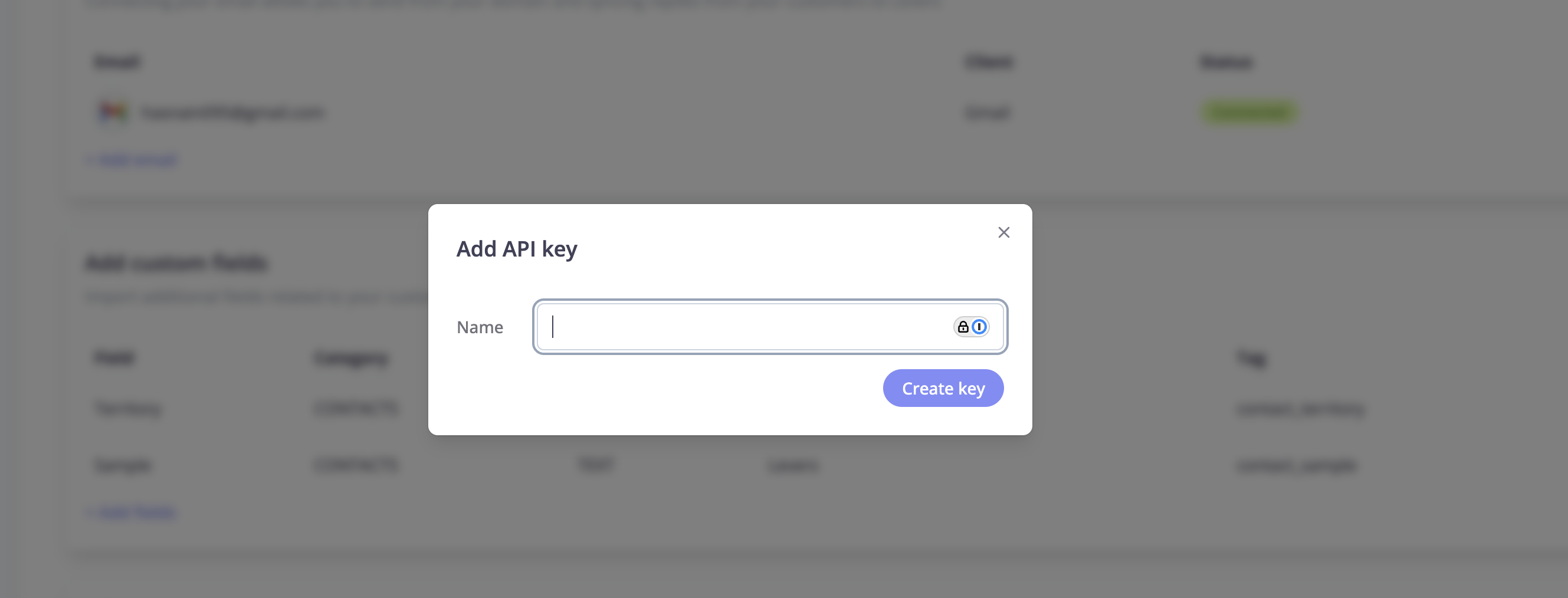 Navigate to the settings page in Levers app, and scroll to the API keys section. Click on Add API key.